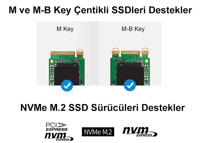 NVMe M – B ve M Key Sürücüler ile Uyumlu