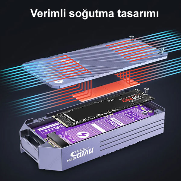 Tamamı alüminyum gövde, mükemmel ısı dağıtımı sağlar. Ürün ile birlikte sunulan 10 adet termal silikon ped; sürücünün üzerinde bulunan yongalara yapıştırılarak, ısı verimli bir şekilde dağıtılır. SSD sürücü üzerine uygulanan Termal Pedler ve alüminyum gövde yapısı, ısının hızla dağıtılarak, iç sıcaklığın düşürülmesini sağlar. Sürücünün performans kaybı olmadan çalışmasına yardımcı olur.