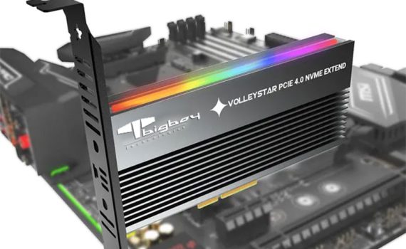 RGB ışıklandırmalı Bigboy BTC-M2G4PE4SHRGB genişleme kartı, PCIe 4.0 NVMe M.2 SSD sürücüleri M.2 yuvası olmayan sistemlerde yüksek performans ile kullanmayı sağlar.